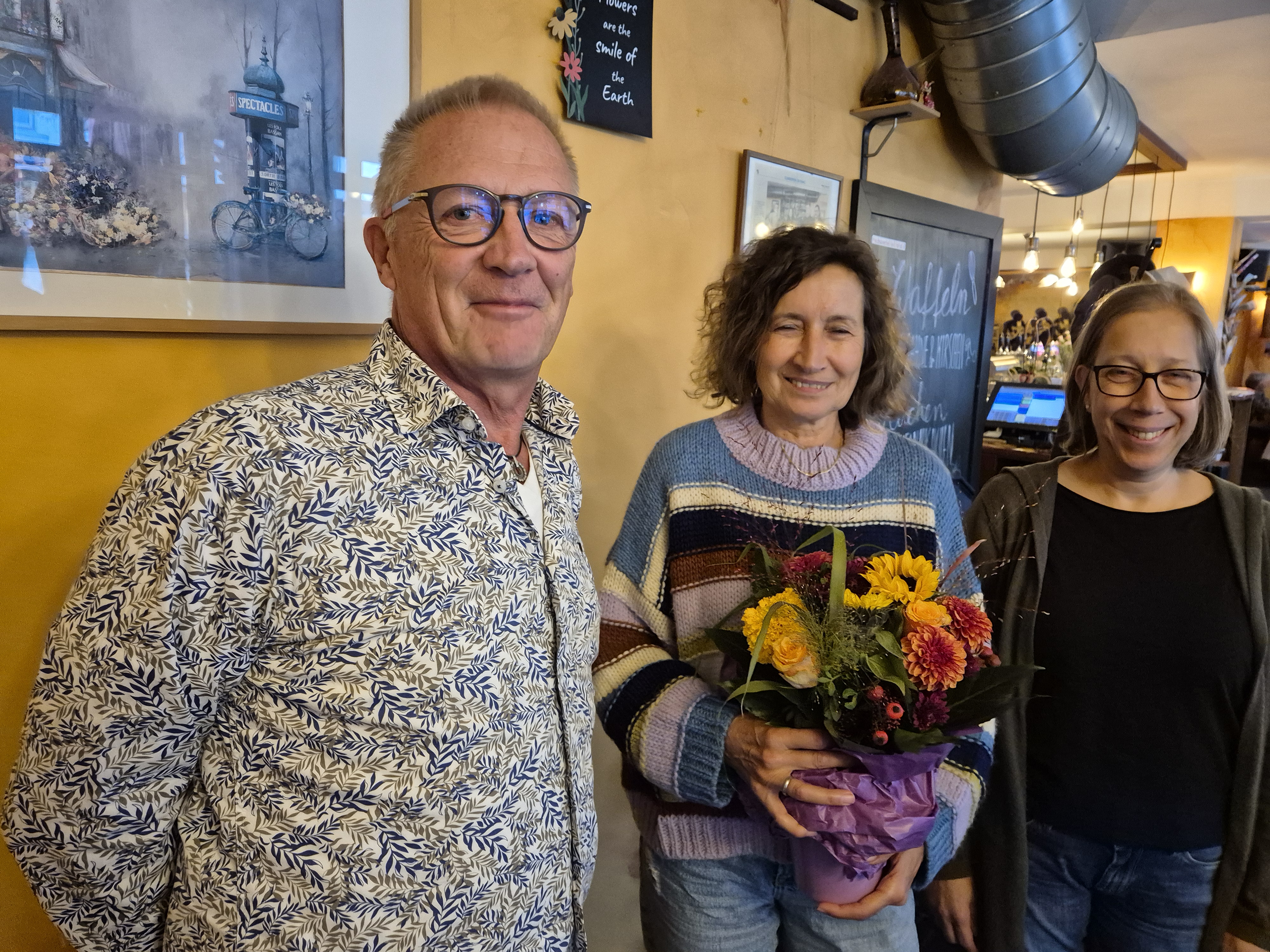 Blumen für Garça Oliveira als 300te Mitglied im Förderverein Welttheater